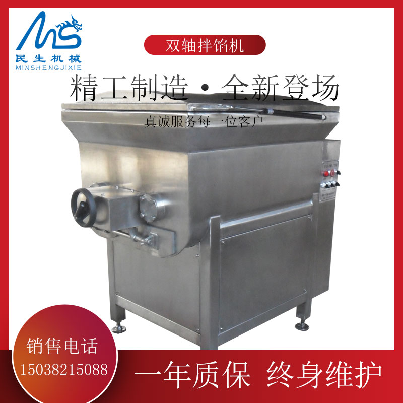 雙軸雙速拌餡機(jī)可(kě)以用(yòng)于攪拌餡狀、醬狀、顆粒↔δ狀以及粉狀的(de)物(wù)料,是(shì)利用(yòn ≈<g)旋轉的(de)雙軸對(duì)物(wù)料進行>$(xíng)攪拌并均勻混合,可(kě)節省人(rén)←α≤工(gōng)。民(mín)生(shēng)雙軸雙速¥₽↓拌餡機(jī)有(yǒu)200L、35✘→0L、600L和(hé)1200L等幾種型号可(kě)供用(yòng® ↕)戶選擇。