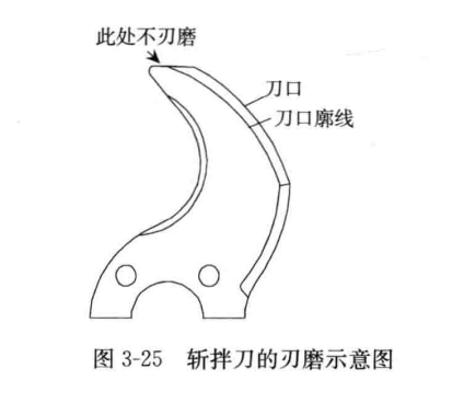 (2)開(kāi)動機(jī)器(qì)•♣,使刀(dāo)與粗砂輪進行(xíng)摩擦,同時(shí)給磨±"♣刀(dāo)輥施加一(yī)定壓力,促進磨刀(dāo)效果。要(yà§"↔o)求在斬切刀(dāo)刀(dāo)尖處未開(k↔ $āi)刃,此部分(fēn)不(bù)需刃磨(圖3—2→♣ 5)。